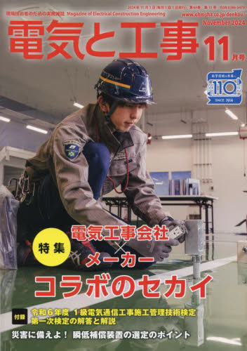 |別添:小冊子(令和6年度 1級電気通信工事施工管理技士 第一次検定 解答と解説) 特集 電気工事会社×メーカー コラボのセカイ付録 令和6年度 1級電気通信工事施工管理技術検定 第一次検定の解答と解説(B5判、52ページ)一般記事 延線機の遠隔制御 UPSと瞬低補償装置 母線プラグインシステムライセンス たとえて学ぶ! 電気理論/第一種電気工事士学科試験対策/電気工事・施工管理丸わかり連載 電気通信工事の疑問はコニタンに聞いて!/トレンドジャック! 最新技術にフォーカス/現場DXのためのノーコードツール活用という選択肢/強欲な青木&消防設備士/SPDの使い方/人材不足を解消! 建設業の働き方改革、始めました/なるほど! わかる! モノゴトをナナメから見てみよう/“電気交渉人” 一之瀬愛理の… 人を動かすスキルアップ講座/ヒューマンエラー対策の極意/ズバット解決!そのギモン、編集部がお答えします!/業界、企業の魅力を発信! \御社の●●を教えてください!/
