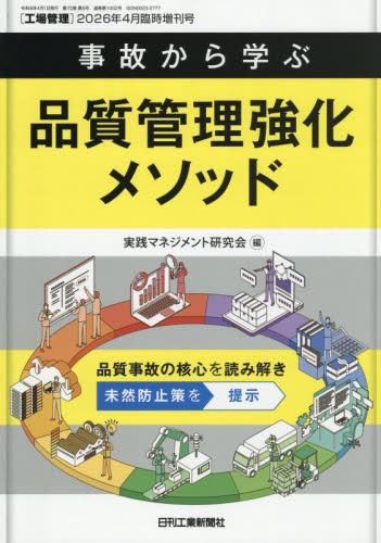 「事故から学ぶ 品質管理強化メソッド」| 増刊タイトル『事故から学ぶ 品質管理強化メソッド』 品質劣化による事故は後を絶たない。4月臨時増刊号では、過去に起きた重大な品質事故を事例として取り上げ、事故を未然に防ぐ方策を提示する。事例編・解説編の2部構成で、事例編ではさまざまな業界の失敗例7件を提示し、品質保証水準を高めるための課題と解決方法を解説する。品質事故の防止には、4M(人、機械、材料、方法)対策だけでなく、組織・リーダーの役割や企業風土も重要となる。解説編では、事例編で紹介した品質事件の課題を8つのテーマに整理し、それぞれの解決策を明示。品質事故を回避するための具体的な取組みを提案する。