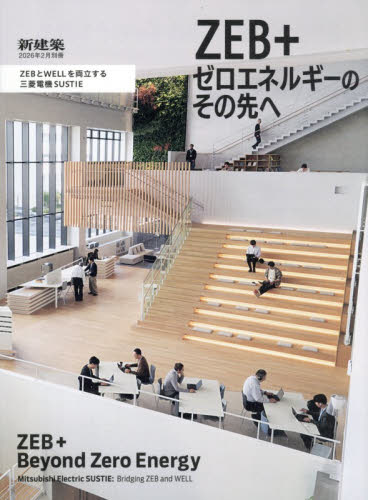 「ZEB+ ゼロエネルギーのその先へZEBとWELLを両立する三菱電機SUSTIE」| 新建築2026年2月別冊では、三菱電機のZEB関連技術実証棟「SUSTIE」を特集する。SUSTIEは、今後ZEB化の普及が期待される都市部の中規模オフィスビルを想定したプロトタイプとして、延床面積6,000 超の規模で計画された。BEI=?0.06(基準比106%の省エネルギー)を達成しながら、『ZEB』を実現するとともに、執務者のウェルネスにも焦点を当て、省エネルギーと快適性の両立を目指した技術統合が図られている。SUSTIEでは、入居後も室内外に設置された各種センサーにより、温度・湿度をはじめ、オゾン濃度、PM10濃度、花粉量などを継続的に計測し、詳細な環境分析を行っている。加えて、執務者を対象とした定期的なアンケート調査を通じて、主観的な快適性や満足度の把握も試みられている。本号では、こうした実測データや調査結果をビジュアルとして紹介する。「リビングラボ」として日々実験が重ねられるSUSTIEでの取り組みを通じて、次世代オフィスのあり方、その可能性を感じ取っていただければ幸いである。
