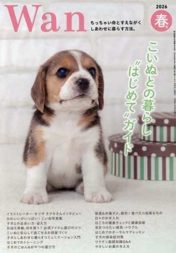 こいぬとの暮らし“はじめて”ガイド| 【 特 集 】こいぬとの暮らし“はじめて”ガイドふわふわでキュートなこいぬのお迎えは、心ときめく瞬間の連続!けれど新生活が始まってみると、あわてたり戸惑ったりすることも多いものです。そこで今回の特集では、「こいぬとの暮らし」にまつわるノウハウを思いつくかぎり詰め込みました。はじめてこいぬを迎える初心者飼い主さんも、いつかの出会いを考えているベテラン飼い主さんも。おうちにやって来た小さな命を守り、すえながく健康でしあわせな暮らしを送るために、ぜひ役立ててください。犬と過ごす日々のすべてが、やがて宝物になっていく イラストレーター・セツサ チアキさんインタビューかわいいがいっぱい! こいぬ写真集 蜂巣文香・中村陽子・にわ最高の「はじめまして」のために 子犬との出会い方・迎え方はじめての子犬のお迎え準備 何を買う? 必須アイテム選びのコツ 大谷幸代空間を整えれば絆も育つ! こいぬと安心して過ごせるお部屋づくり 金巻とも子子犬としあわせに暮らすためのコミュニケーション入門 須崎 大・松橋 都愛犬の安全と心穏やかな暮らしを守る はじめてのトレーニング MIKI成犬とはどう違うの? 子犬のごはん&おやつの選び方 木鋪絵美奈誤飲&中毒 ダメ、絶対! 「食べたら危険なもの」回避マニュアル 福地可奈おうちで無理なく取り組もう! 日々のお手入れ 福田亜美弥子犬の健やかな成長のために押さえておきたい 日ごろの健康チェックと健康診断のキホン 石川勇一子犬だからこそ気をつけよう! とくに注意したい成長期の病気・トラブル 由本雅哉子犬のうちからスタート! はじめてのオーラルケアレッスン 竹内眞弓知って備える! 子犬の感染症対策 岡田夏樹いまさら聞けない!? 子犬のためのワクチン基礎知識Q&A 伊藤優真こいぬとふれあうことから始める やさしいお薬の与え方 春日部美穂この子と一生暮らすために 知っておきたいお金の備え 加藤梨里実録! うちの子ビフォー&アフター●美術と犬 第4回(最終回) 怖い犬 宮下規久朗●世界の街角にて 犬と人が織りなす文化 Vol.9 Utrecht 蜂巣文香●みんなでつく…他