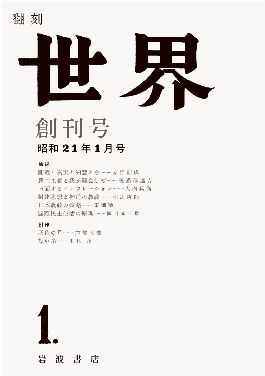 「今や力強い文化国家建設の第一歩が踏み出されねばならぬ」(「発刊の辞」より)。創刊八〇年を記念し、新字新かなに改め翻刻。「今や力強い文化国家建設の第一歩が踏み出されねばならぬ。文化は単なる享受ではない。その本質は道義にあり、その生命は創造にある。この文化の権威と自主とが力強く恢復されねばならぬ」(「発刊の辞」より)。敗戦から四カ月余、不安と混乱の中で誕生した『世界』。今こそ読み返すべき創刊号を、新字新かなに改め翻刻。<br>