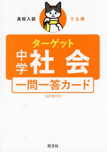 高校入試で覚えておきたい社会用語を一問一答形式で確認できるカードブックです。<br>『高校入試 でる順ターゲット 中学社会120 五訂版』に対応しています。<br>旺文社独自の入試分析にもとづき、よくでる社会用語400語を選び、「地理」「歴史」「公民」の分野ごとに単元をでる順に配列しました。<br>ミシン目にそって各カードを切りはなし、付属のリングでとじて持ち運び、スキマ時間に活用することができます。<br><br>三択問題が解ける旺文社の学習アプリ「学びの友」もおすすめです!<br>※本書は、アプリ「学びの友」に対応しています(2026年春対応予定)。詳しくは、公式サイト(https://manatomo.obunsha.co.jp/)をご覧ください。<br>旺文社