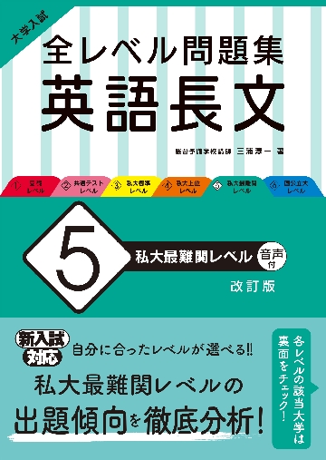 《新入試対応》<br>私大最難関レベルの出題傾向を徹底分析!<br><br>◆特長◆<br>・さまざまなタイプの設問が解ける幅広いテーマの10英文を収録!<br>・重要構文は文構造を詳しく解説!<br>・「パラグラフ展開」や「テーマ解説」で、長文の読解力を高められる!<br>・語句リストの復習で語彙力が増強できる!<br>・音声を使ったディクテーションでリスニング力もアップ!<br><br>◆自分にあったレベルが選べる!◆<br>1 基礎レベル<br>2 共通テストレベル<br>3 私大標準レベル<br>4 私大上位レベル<br>5 私大最難関レベル<br>6 国公立大レベル<br>