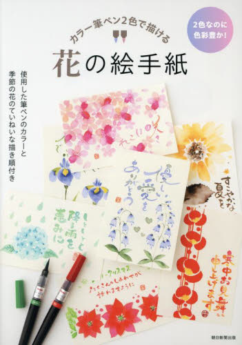 カラー筆ペン2色で描ける花の絵手紙 2色なのに色彩豊か! 使用した筆ペンのカラーと季節の花のていねいな描き順付き / 朝日新聞出版
