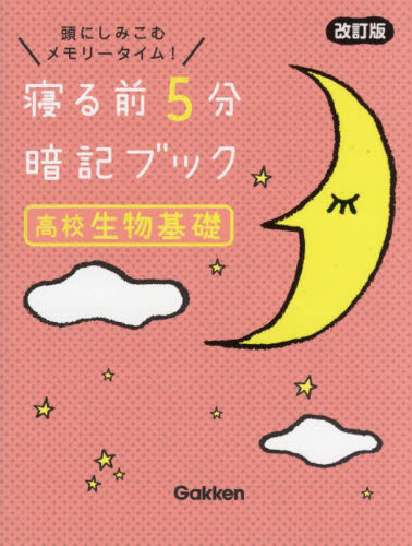 「寝る前5分の暗記が記憶の定着をうながす」というメソッドをもとに、高校生物基礎のポイントを集めた参考書。新指導要領対応。本書の特徴<br>・寝る前の暗記が記憶の定着をうながすというメソッドをもとに、高校生物基礎の重要なところを集めた参考書! <br>・ハンディサイズだから、いつでもどこでも取り組める! <br>・赤フィルターで、楽しく勉強できる! <br><br>読者の声<br>★持ち運びに便利だから、どこででも使えていい! <br>★読むだけで本当に覚えられた<br>★鉛筆なしでできるのがよかった<br>★ベッドで読むのにちょうどいい! <br>★部活や塾で忙しいけど、両立して取り組めた! <br>★重要なポイントがわかるからテスト前に便利<br>