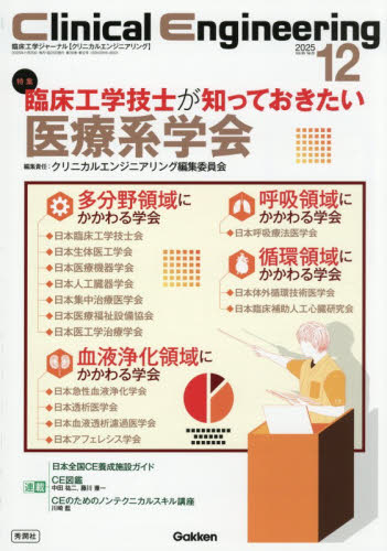 臨床工学(クリニカル・エンジニアリング)に従事する医療スタッフ,あるいはこの分野を目指す方のための月刊誌.<br>クリニカルエンジ