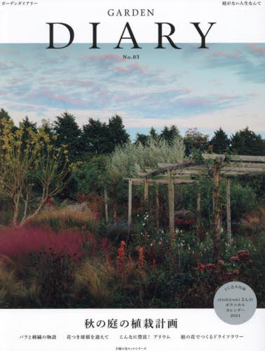 庭が与えてくれるものは果てしない。植物を育て、ともに暮らすことの悦びや豊かさを提案する、ガーデニングの実用ムックです。GARDEN DIARY[ガーデンダイアリー ] No.03 目次【巻頭】育種家・河本麻記子さんの「ローズ・ドゥ・メルスリー」に宿る バラと刺繍の物語【特集 秋の庭の植栽計画】カピラリスが主役の庭|秋色ガーデンのつくり方【球根企画】アリウムで個性豊かな庭へ|浅き春、花つき球根を迎えて|球根の寄せ植えはいかが?|植えっぱなしOK!この秋植えたい小球根12種|チューリップの雑貨【第2特集 麗しきドライフラワー】早春の花でつくるドライフラワー|ドライフラワーを楽しむ12のアイデア【バラ企画】木村卓功さんが贈る新品種のバラ|基礎から知りたいバラの冬剪定【連載】スマホで撮る庭と植物のフォトレッスン|河合伸志さんの万植物四方山話「カラーリーフの底力」|道具選びは楽し「ジョウロ」|ボタニカルな雑貨を探して|生産者を訪ねて「ラヴァンドの小径」 他【とじ込み付録】 otsukiyumiさんのボタニカルカレン<br><br>