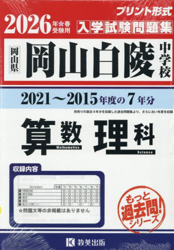 ’26 岡山白陵中学校 算数・理科
