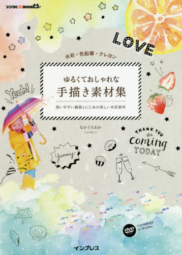 ゆるくておしゃれな手描き素材集 水彩・色鉛筆・クレヨン 使いやすい線画とにじみの美しい水彩素材 / なかうち わか 著