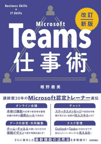 Microsoft Teamsの強みは、「オンライン会議」「ビジネスチャット」はもちろんのこと、<br />「データの保管・共同編集」や「タスク管理」まで、<br />チームのシゴトに必要なすべてが詰まっているところにあります。<br />「あのオンライン会議の記録が見つからない」「チャットならすぐに済む話なのに」といったムダも、<br />Teamsを使いこなせばあっという間に解消することができます。<br /><br />そこで本書では、講師歴30年のMicrosoft認定トレーナーが、<br />Teamsで日々のシゴトを快適にするためのノウハウをご紹介。<br />初版刊行時(2021年4月)からさらに進化した、<br />Teamsの最新機能・UIに対応し、<br />解説・画面キャプチャを大幅に刷新しました。<br /><br />Teamsの機能を最大限生かすために必要な、<br />「ビジネススキル」まで掘り下げて解説しているので、<br />どんな働き方でも活用できる確かな「実践知」が身につきます!<br>椎野磨美 著