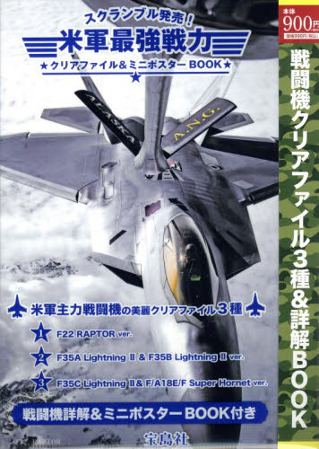 米軍が誇る最強戦闘機のベストショットがクリアファイルとミニポスターになりました。<br>クリアファイル、ミニポスターともに最新のF35ライトニングIIや、F22ラプター、F/A18E/F15スーパーホーネットを厳選。<br><br>クリアファイル3種<br>各サイズ(約):縦31×横22cm<br>