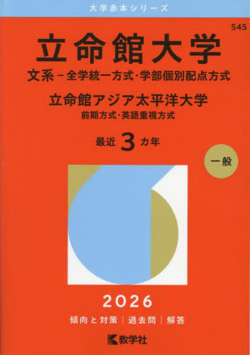 立命館大学 文系−全学統一方式・学部個別配点方式 立命館アジア太平洋大学 前期方式・英語重視方式 2026年版 / 教学社編集部