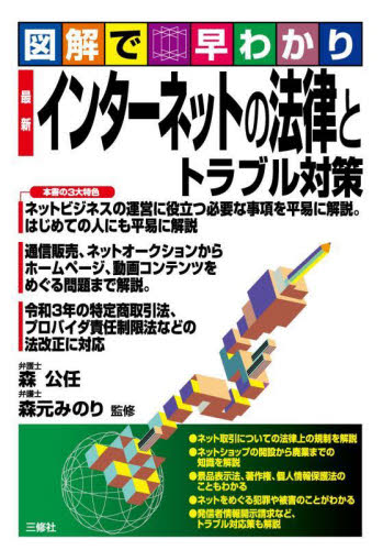 特定商取引法、景品表示法、著作権法、刑法、不正アクセス禁止法などの法律知識、ネットビジネスの運営に役立つ必要な事項を解説。特定商取引法、景品表示法、著作権法、刑法、不正アクセス禁止法など様々な法律知識を解説し、ネットビジネスの運営に役立つ必要な事項を紹介。通信販売、ネットオークションに関する基本事項から、動画投稿、まとめサイト、なりすまし、著作権侵害、誹謗中傷などの法律問題や犯罪被害対策まで網羅。令和3年の特定商取引法、個人情報保護法、プロバイダ責任法など最新の法改正にも対応。<br>森 公任 監修