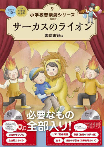 学校教材として、長年売れ続けてきた、小学校の先生必携の音楽劇台本シリーズを、書籍として、パッケージリニューアル!学校教材として、長年売れ続けてきた、小学校の先生必携の音楽劇台本シリーズを、書籍として、パッケージリニューアル!<br>シリーズ全巻に、台本、歌集、演出の手引きのほか、上演用サンプル音源とカラオケ音源を収録したオーディオCD、台本、演出の手引き、メロディ譜、ピアノ伴奏譜のPDFデータを収録したデータCDを同梱。<br><br>第9巻は『サーカスのライオン』。<br>仲間のピンチに立ち上がる、ちょっと臆病で心やさしいライオン。<br>仲間との絆を描いた、オリジナルのハートフルストーリー。<br>東京書籍