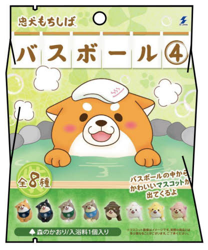 忠犬もちしばのシリーズ第4弾は、森の香りのバスボール(入浴剤)。お風呂に入れて入浴剤が溶けきると、「忠犬もちしば」のマスコットが出てきます。マスコットの忠犬は、「おかか」、「ごま」、「あんこ」、「さくら」、「つな」、「うめ」、「きなこ」、「もなか」の8種類。<br>