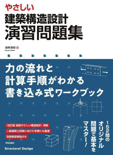 力の流れと計算手順の理解が進む例題、図や計算式を書き込んで取り組める演習問題、建築士試験レベルの正誤問題まで100問以上を収録した問題集。RC構造・S構造の基礎から力学との関連もわかる構成に。解答解説付100問以上のオリジナル問題で構造計算の全体像をつかもう!<br><br>構造設計の学習には手を動かして解く練習が効果的です。<br>本書は、力の流れと計算手順の理解が進む例題から、図や計算式を書き込んで取り組める演習問題、建築士試験レベルの正誤問題まで100問以上を収録。<br>鉄筋コンクリート構造・鉄骨構造の基礎をカバーし、構造力学との関連もわかる構成にしました。<br>取り外し可能で使いやすい解答解説冊子には、なるべく計算過程がわかるように記載しています。<br>浅野清昭
