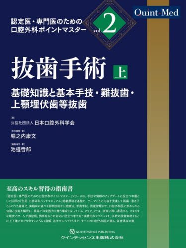 堀之内先生の「抜歯が上手になって欲しい、得意になって欲しい」との強い思いからまとめられた上下巻にわたる集大成本。写真やイラスト等による視覚素材をふんだんに盛り込んだ、臨床で即活かせる実践ガイドです。著者の抜歯に関する計6回にわたる『口腔外科ハンドマニュアル』掲載原稿を基盤に大幅に加筆・再編のうえ、口腔外科ポイントマスターシリーズの上下巻として書籍化。上巻では、必要な基礎知識と基本手技、難抜歯、上顎埋伏歯の抜歯などを取り上げ、手際の良い抜歯の実践に役立つ考え方とテクニックを、写真やイラスト、動画による多数のビジュアル資料で具体的にわかりやすく解説した。イメージトレーニングにも最適な、全関係者必携の書。<br>日本口腔外科学会