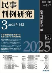 研究者・実務家による民事裁判例の速報的解説研究者・実務家による民事裁判例の速報的解説<br><br>2025年1〜6月に公刊された判例集登載裁判例を中心に、最新民事裁判例を網羅的に取り上げ、その動向と注目裁判例の解説を行う。また、スラップ訴訟問題に関する手がかりをつかむべく、訴訟提起が違法であるとして反訴・別訴が提起された近時の事例を総合的に概観する「総合判例研究」も掲載。<br /><br>民事判例研究会/編