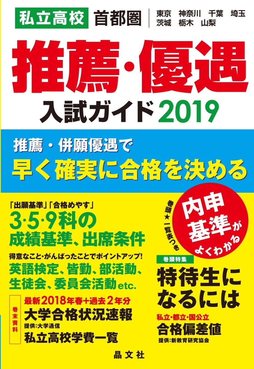 私立高校推薦・優遇入試ガイド 首都圏|東京 神奈川 千葉 埼玉 茨城 栃木 山梨 2019 / 晶文社学校案内編集部/編集