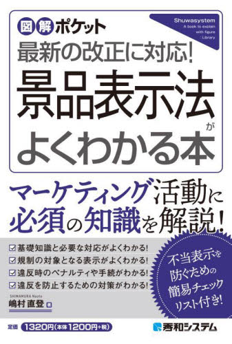 本書は一般向けの景品表示法の解説書です。景品表示法の基礎知識や最新の改正の要点、企業に求められる対応をわかりやすく解説。実際の違反事例も取り上げることで、注意すべきポイントがすっきり理解できます。本書は一般向けの景品表示法の解説書です。景品表示法は不当な広告や過大表示などを規制する法律であり、2023年にはステマ規制が開始され、2024年には刑事罰を導入するなどの改正が行われました。消費者向けに商品やサービスを提供する企業であれば業種を問わず影響のある法律であり、正しい知識がなければ知らぬ間に違反してしまった、ということにもなりかねません。そこで本書では、景品表示法の基礎知識や改正の要点、企業に求められる対応をわかりやすく解説。実際の違反事例も取り上げることで、注意すべきポイントがすっきり理解できます。<br>嶋村直登