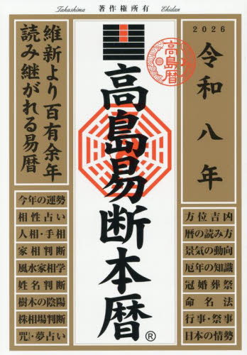 読みやすくて、わかりやすい!<br>維新より百有余年読み継がれる易暦。いち早く【令和8年】の運勢を知りたいあなたへ。<br>高島易断協同組合