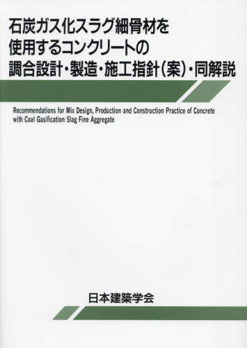 石炭ガス化スラグ細骨材を使用するコンクリートの調合設計・製造・施工指針〈案〉・同解説 / 日本建築学会