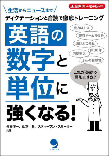 「英語圏での生活」、「ビジネス」、「ニュースの理解」における数字や単位が、この本で楽になる。実践的で役立つ 1冊。<br />日本人が一番苦手な数字を聞き取るコツ、<br />日本にない単位をイメージで理解するコツをつかめます。<br />スーパーでチーズや野菜果物をスムーズに買うことから、<br />仕事における単位やよく使うコロケーション、フレーズ、最近の英語ニュースまでカバー。<br />英語の数字と単位がこの本の解説とトレーニングで理解しやすくなります。<br>佐藤洋一 他著