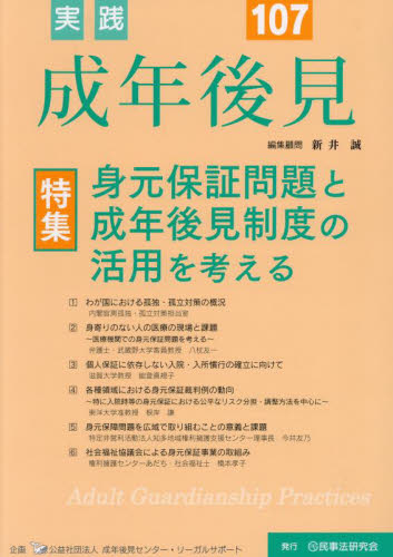 成年後見実務に関する最新の情報を提供する唯一の専門雑誌! 107号では「身元保証問題と成年後見制度の活用を考える」を特集!成年後見実務に関する最新の情報を提供する唯一の専門雑誌!<br>107号では「身元保証問題と成年後見制度の活用を考える」を特集! <br>毎号の特集では実務で直面している問題点に焦点をあて、わかりやすく解説!<br> 後見実務に携わる弁護士、司法書士、社会福祉士、行政書士、税理士等の実務家をはじめ、研究者、行政担当者、福祉・医療・介護関係者、成年後見制度に携わる親族・市民等にとって役立つ情報が満載!<br>新井誠