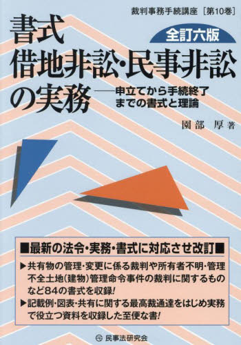 令和5年施行の改正民法で見直された共有関係制度・財産管理制度については章を新設して詳解するなど最新の法令・実務・書式に対応!・令和5年施行の改正民法で見直された共有関係制度・財産管理制度については章を新設して詳解!<br>・共有物の管理・変更に係る裁判や所有者不明・管理不全土地(建物)管理命令事件の裁判に関するものなど84の書式を収録!<br>・改正空家等対策特別措置法、借地借家法等の電子化ほか平成28年以降の法改正に対応し、記載例・図表・共有に関する最高裁通達をはじめ実務に役立つ資料を収録した至便な書!<br>・弁護士・司法書士などの法律実務家をはじめ裁判所関係者・自治体関係者などの必携書!<br>園部厚
