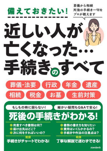 身内が亡くなった…、葬儀や年金、遺産や相続・・・などの執り行いや手続きが迷わず進めることができる本です!どこから手を付けるべきか?<br>どこに連絡すればいいのか? 必要な書類は? その書類はどこで手に入るのか? 書類の書き方は? 自分はどれに該当するのか? 困った時に手助けしてくれるのはどこか? <br><br>身近な人が亡くなることで始まる各種手続きと葬儀、そして遺産整理や相続などの一連の動きなど、本書は、その進め方を利用者視点で解説した手順本です。<br>その上で行政書士、司法書士、葬儀コンサルタントなど、各分野に精通した著者陣による確かな知識とアドバイスで、やるべきことを時系列順で解説、手続きごとにフローチャートで的確に指示しているため、なにをすればいいのかが迷わずわかります!<br>
