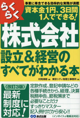 ロングセラーの最新制度対応版(最新税制、インボイス制度や「電帳法」への対応ポイントも)。「事業に専念できる」と好評の効率的な実務が満載。定款作成、登記申請などの各種手続きから、設立後の経理、税金、節税策まで、必要なことだけをすっきりマスター。すべて記入例付。<br>村岡清樹