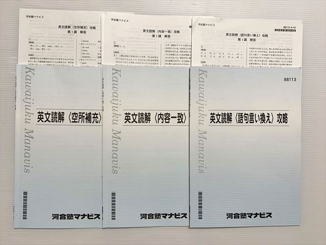 | AH01-001 河合塾マナビス 英文読解〈内容一致〉攻略/〈空所補充〉/〈語句言い換え〉攻略 2022 計3冊 10m0B |