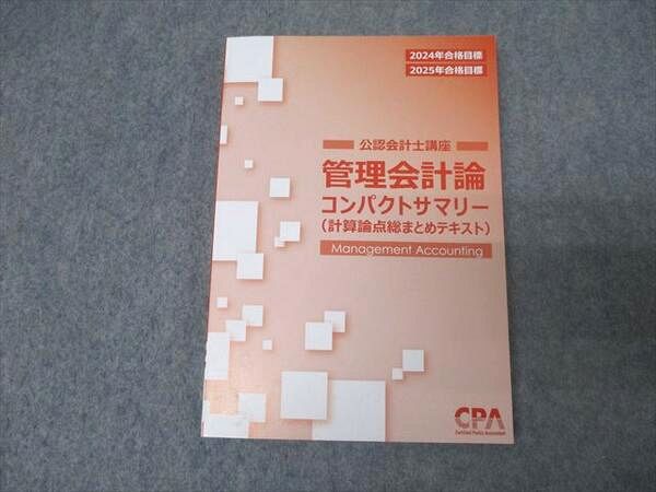 | AK04-022 CPA会計学院 公認会計士講座 管理会計論 計算論点総まとめテキスト 2024/2025年合格目標 未使用 12s4D |