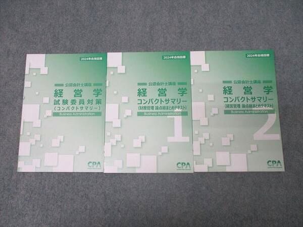 | AK06-003 公認会計士講座 経営学 論点総まとめテキスト1/2 財務/経営管理/試験委員対策 2024年合格目標セット 未使用 計3冊 20m4D |