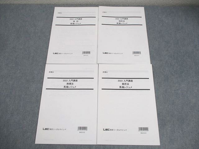 | FA10-106 LEC東京リーガルマインド 弁理士 2022 入門講座 条約/特許法 等 馬場レジュメ 2022年合格目標 状態良い 計2冊 11s4D |