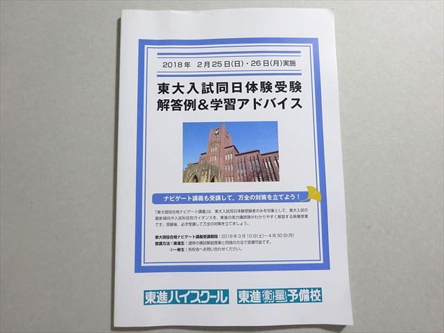 | FD37-156 東進 東大入試同日体験受験 解答例&学習アドバイス 2018年2月実施 状態良い 英数化物生地学地理世日国 全教科 007s0B |
