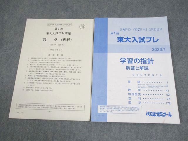| 代々木ゼミナール 代ゼミ 東京大学 第1回 東大入試プレ 2023年7月実施 数学 009m0B |