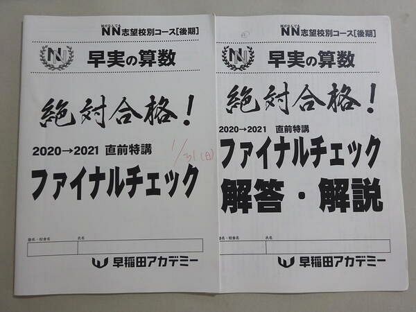 | 早稲田アカデミー 早実の算数 絶対合格 2020-2021 ファイナルチェック 004s2B |