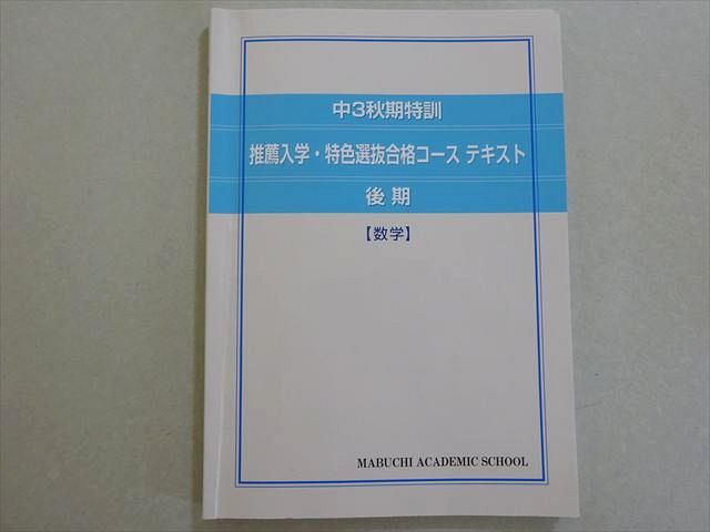 | 馬渕教室 中3秋期特訓 推薦入学・特色選抜合格コーステキスト 数学 2024 後期 010m2B |