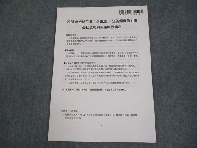 | CPA会計学院 公認会計士講座 企業法 短答超直前対策 会社法判例百選概説講座 2025年合格目標 状態良い 004s4C |