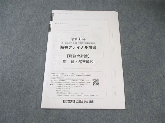 資格の大原 公認会計士講座 短答ファイナル演習 【財務会計論】 2024年合格目標 未使用品 004s4B