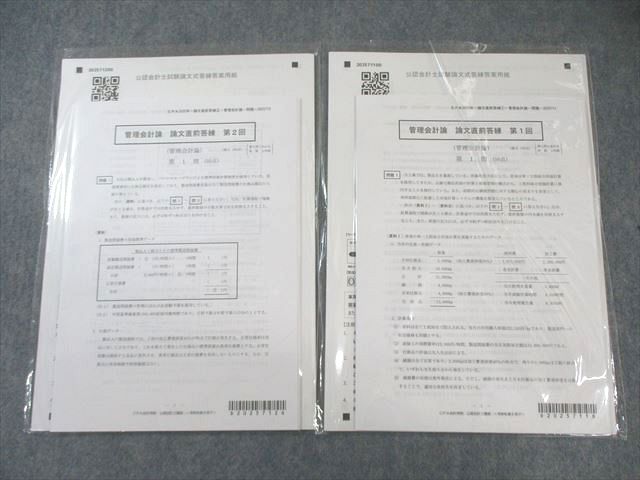 | CPA会計学院 公認会計士講座 論文直前答練 管理会計論 第1/2回 【計2回分】 2025年合格目標 未使用品 010m4B |