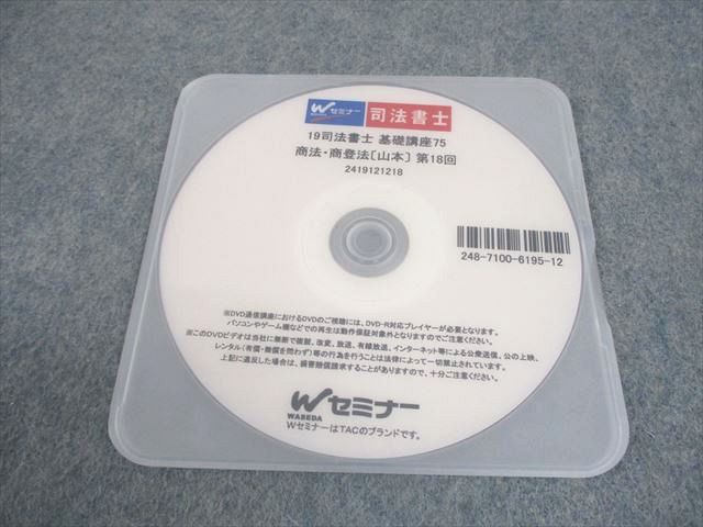 | Wセミナー 司法書士 基礎講座75 商法・商登法[山本] 第18回 2019年合格目標 状態良い DVD1枚 006s4B |