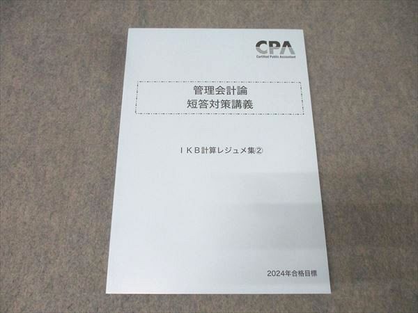 | CPA会計学院 公認会計士試験 管理会計論 短答対策講義 IKB計算レジュメ集2 2024年合格目標 未使用 016S4C |