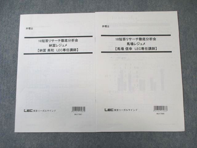 | LEC 弁理士 短答リサーチ徹底分析会 馬場/納冨レジュメ 2018年合格目標 計2冊 003s4B |
