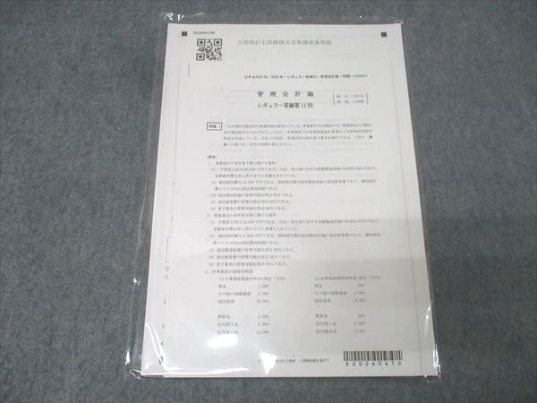 | CPA会計学院 公認会計士講座 管理会計論 レギュラー答練 第11回 テスト1回分 2025/2026年合格目標 未使用 003s4B |