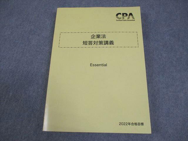 | CPA会計学院 公認会計士講座 企業法 短答対策講義 Essential 2022年合格目標 書き込みなし 023S4B |