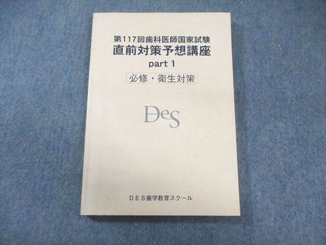 | PY01-034 DES歯学教育スクール 第117回 歯科医師国家試験 直前対策予想講座 Part1 必修・衛生対策 2024年合格目標 17S3C |
