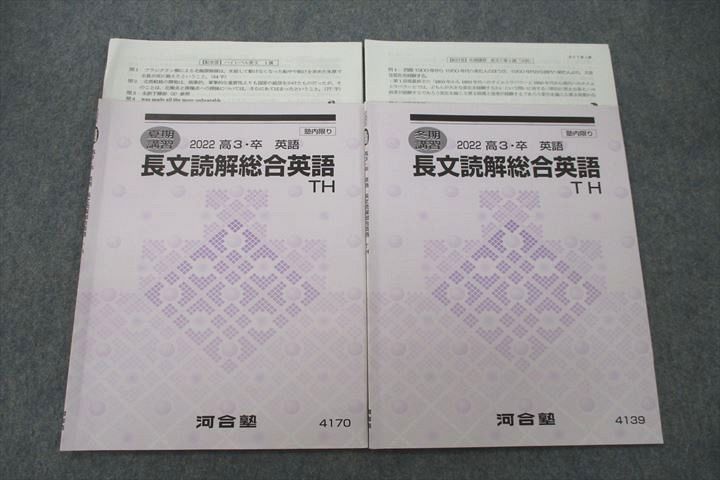| VF27-065 河合塾 トップ・ハイレベルコース 長文読解総合英語TH テキスト 2022 夏期/冬期 計2冊 09s0D |