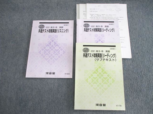 | VJ01-103 河合塾 共通テスト攻略英語 リスニング/リーディング/サブテキスト 2021 夏期/冬期 計3冊 20S0C |